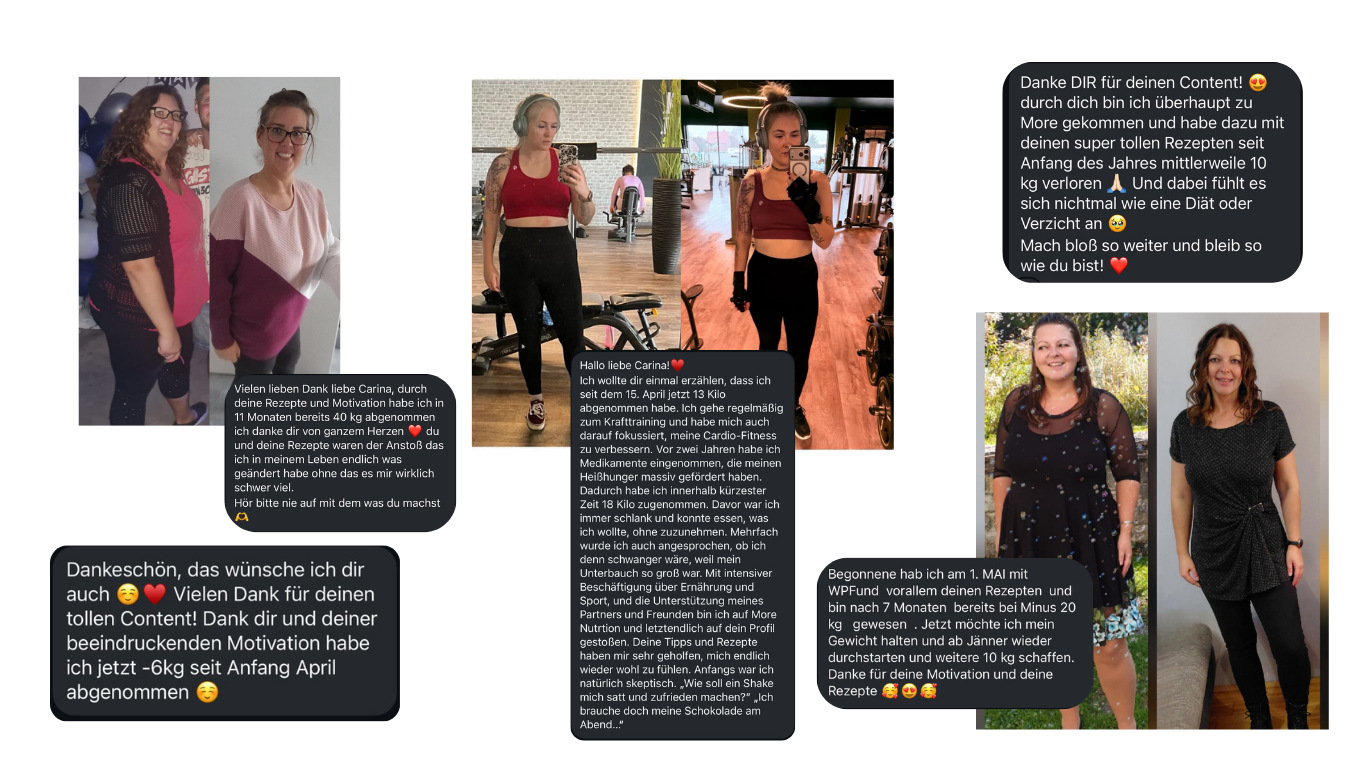 Auf meinen Social-Media-Kanälen (IG: carina_hartmann_) teile ich jeden Tag Rezepte, die proteinreich, kalorienarm und alltagstauglich sind – und trotzdem aussehen wie kleine Cheatmeals. Genau diese Kombination hat für mich alles verändert: endlich satt sein, ohne sich schwer zu fühlen, und Essen genießen, das richtig Spaß macht.